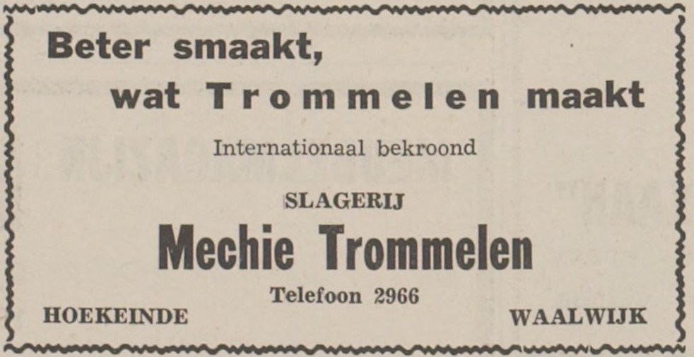 Advertentie Slagerij Mechie Trommelen uit De Echo van het Zuiden d.d. 20-11-1959.