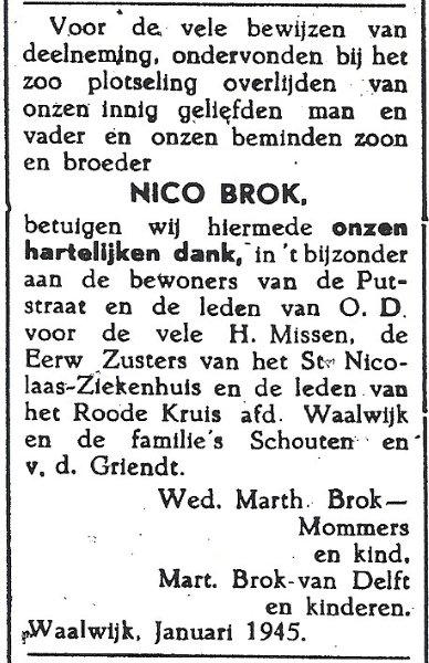 Dankbetuiging Nico Brok (uit De Echo van het Zuiden)