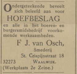 Advertentie van smid Fer van Osch uit De Echo van het Zuiden, 9 februari 1924