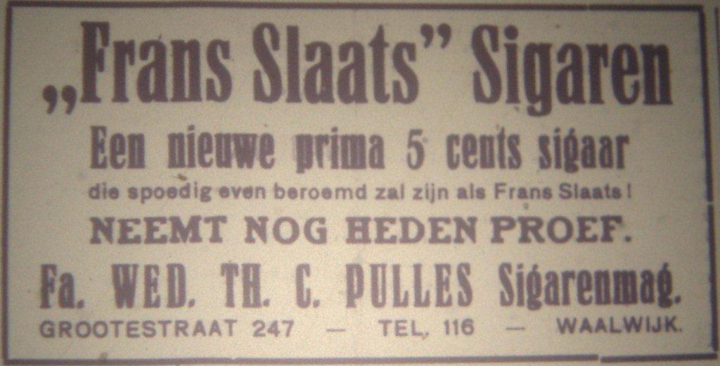Advertentie voor de Frans Slaats-sigaren (1937)