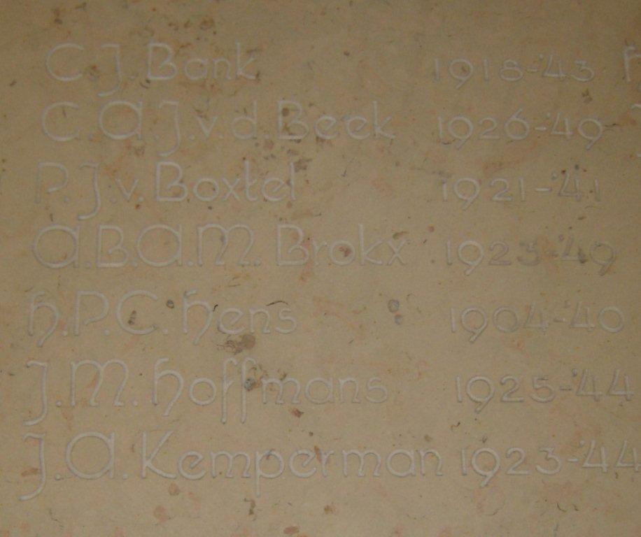 Gedenksteen voor de tijdens de Tweede Wereldoorlog omgekomen leerlingen en oud-leerlingen van het Dr. Mollercollege (detailopname)