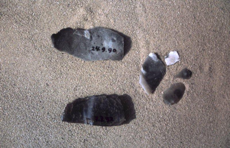 Prehistorische klingen gevonden bij Labbegat in 1990 en 1992 (foto Henk van Gelder)