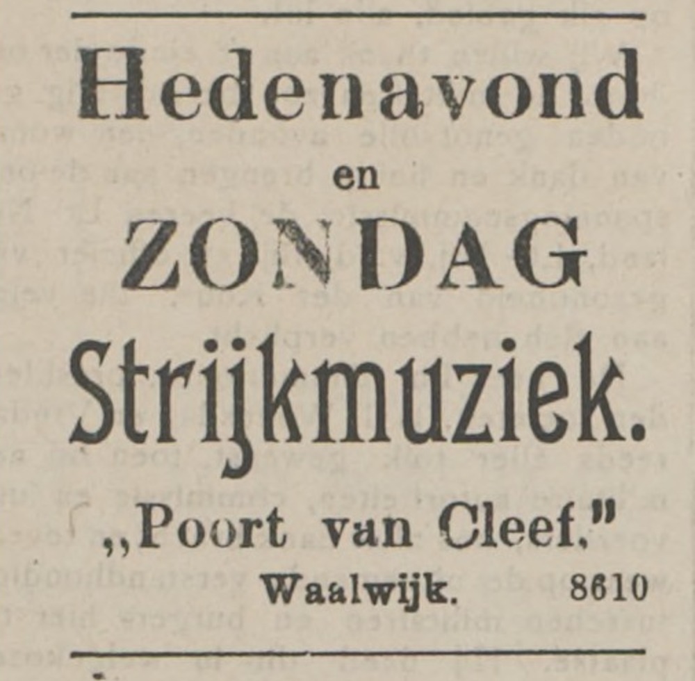 Advertentie van de ‘Poort van Cleef’ uit De Echo van het Zuiden, 25 november 1915.