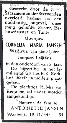 Rouwbericht C.M. leijtens-Jansen (Uit De Echo van het Zuiden)