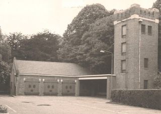 Slangentoren met brandweergarage en overkapping, circa 1957 (collectie Wim van der Lee)