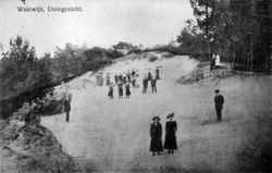 Met zijn heidekruid en duinen,
