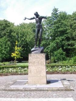 | Techniek | Beeld van gegoten brons, zuil en voetstuk van tufsteen, bestrating van hardsteen keien |