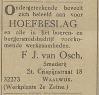 Advertentie van smid Fer van Osch uit De Echo van het Zuiden, 9 februari 1924.
